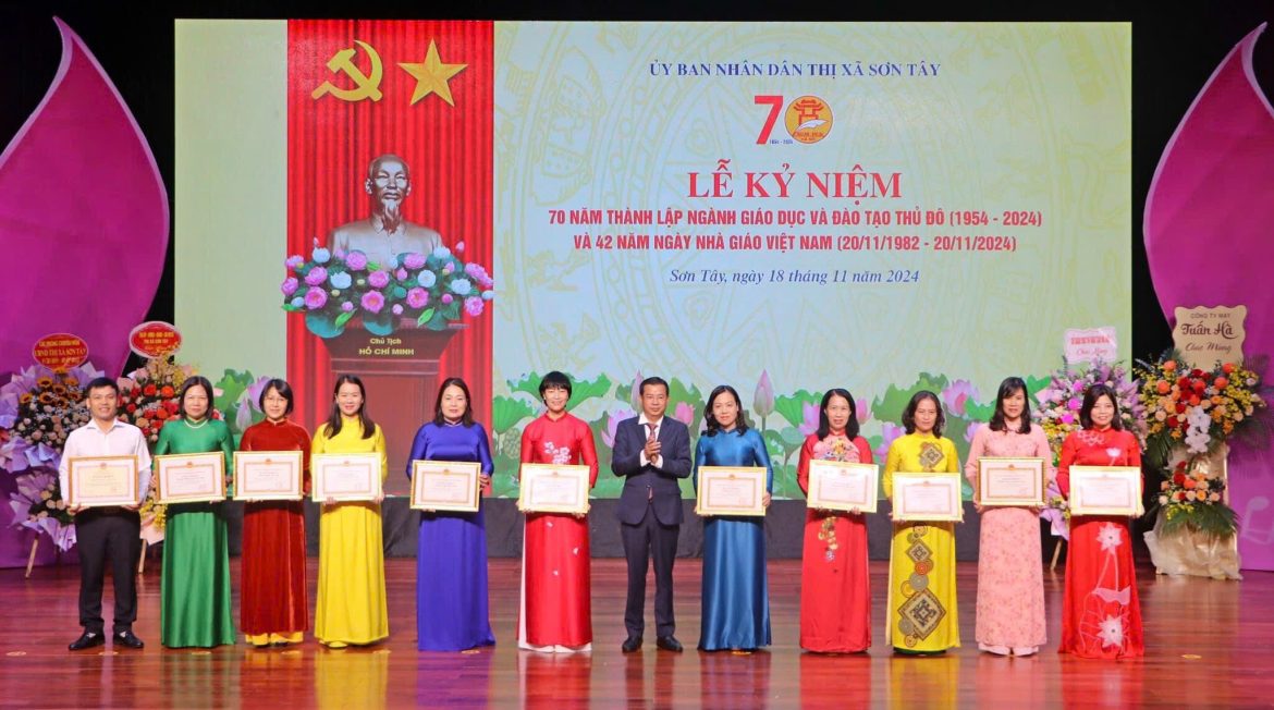 💐Sáng ngày 18/11, UBND thị xã Sơn Tây long trọng tổ chức Lễ kỷ niệm 70 năm thành lập ngành Giáo dục và Đào tạo Thủ đô (1954-2024), 42 năm ngày Nhà giáo Việt Nam 20/11(20/11/1982-20/11/2024) và tuyên dương, khen thưởng các tập thể, cá nhân tiêu biểu ngành giáo dục và đào tạo năm học 2023-2024.