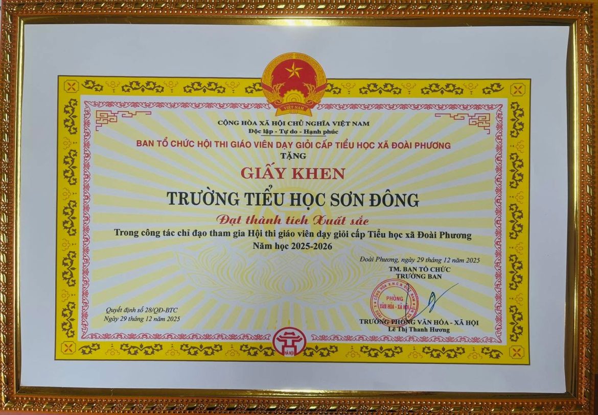 🌟🌟🌟Trường Tiểu học Sơn Đông vui mừng chúc mừng những thành tích nổi bật đạt được tại Hội thi Giáo viên dạy giỏi cấp Tiểu học xã Đoài Phương, qua đó khẳng định chất lượng đội ngũ giáo viên và hiệu quả công tác chuyên môn của nhà trường.